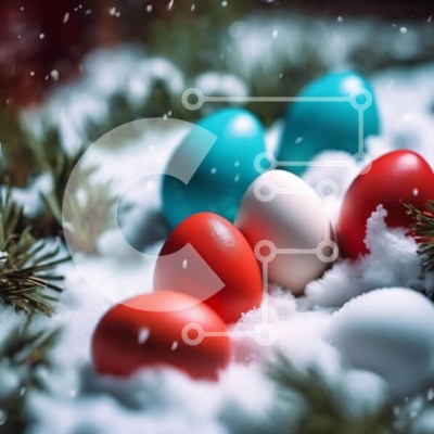 Υπάρχει δυνατότητα προσωποποίησης με δική σας φωτογραφία και προσαρμογής διαστάσεων κατόπιν παραγγελίας. Το συγεκεριμενο Puzzle 10x10 cm – 25 κομμ παρουσιαζει Η εικόνα παρουσιάζει μια ομάδα από πολύχρωμα πασχαλινά αυγά φωλιασμένα ανάμεσα σε κλαδιά πεύκου στο χιόνι, δημιουργώντας ένα εορταστικό και χαρούμενο σκηνικό. Τα κόκκινα και μπλε αυγά θα μπορούσαν να είναι συμβολικά διαφορετικών εορταστικών