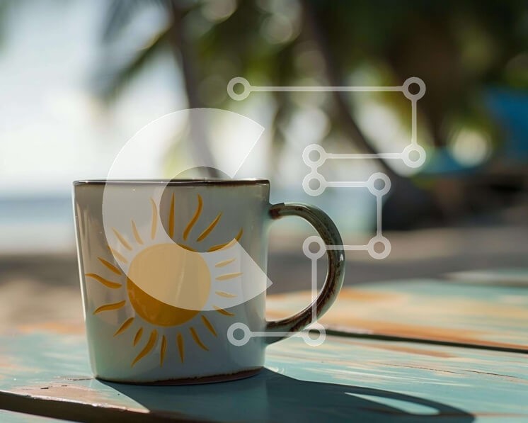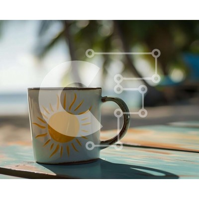 Υπάρχει δυνατότητα προσωποποίησης με δική σας φωτογραφία και προσαρμογής διαστάσεων κατόπιν παραγγελίας. Το συγεκεριμενο puzzle παρουσιαζει Η εικόνα δείχνει μια λευκή κούπα καφέ με σχέδιο ήλιο τοποθετημένη σε ένα ξύλινο τραπέζι εξωτερικού χώρου, με φοίνικες στο βάθος να υποδηλώνουν ένα σκηνικό παραλίας. Ένα άτομο κάθεται στο τραπέζι, απολαμβάνοντας πιθανώς ένα ποτό. Ένα μοναδικό puzzle που συνδυάζει ποιότητα, αισ