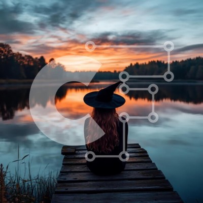 Υπάρχει δυνατότητα προσωποποίησης με δική σας φωτογραφία και προσαρμογής διαστάσεων κατόπιν παραγγελίας. Το συγεκεριμενο puzzle παρουσιαζει Η εικόνα απεικονίζει μια γυναίκα που φορά ένα καπέλο μάγισσας, που κάθεται σε μια ξύλινη αποβάθρα δίπλα σε μια ήρεμη λίμνη κατά τη διάρκεια του ηλιοβασιλέματος. Τα ζωηρά χρώματα του ηλιοβασιλέματος αντανακλούν υπέροχα στην επιφάνεια του νερού, δημιουργώντας μια γαλήνια και μαγ