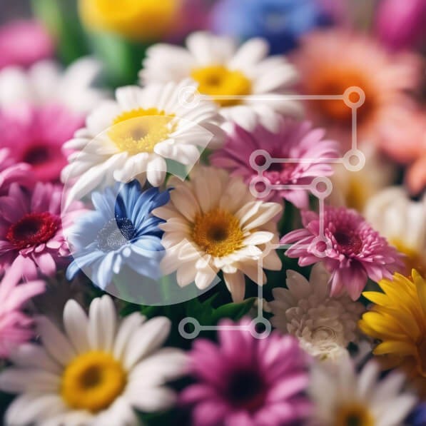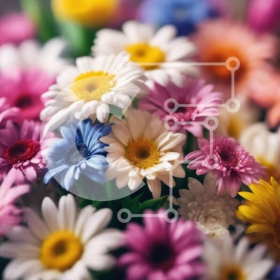 Υπάρχει δυνατότητα προσωποποίησης με δική σας φωτογραφία και προσαρμογής διαστάσεων κατόπιν παραγγελίας. Το συγεκεριμενο puzzle παρουσιαζει Η εικόνα παρουσιάζει ένα μπουκέτο από πολύχρωμα λουλούδια σε διάφορες αποχρώσεις του μπλε, ροζ, κίτρινου και λευκού. Υπάρχουν αρκετοί διαφορετικοί τύποι λουλουδιών που υπάρχουν στο μπουκέτο, όπως μαργαρίτες, γαρίφαλα, ηλίανθοι, κατιφέδες (γνωστοί και ως snapdragons) και νάρκισ
