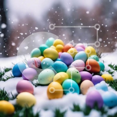 Υπάρχει δυνατότητα προσωποποίησης με δική σας φωτογραφία και προσαρμογής διαστάσεων κατόπιν παραγγελίας. Το συγεκεριμενο Puzzle 10x10 cm – 25 κομμ παρουσιαζει Αυτή η εικόνα παρουσιάζει μια ζωντανή συλλογή από πασχαλινά αυγά που ξεκουράζονται στο χιόνι, με λεπτές νιφάδες χιονιού να πέφτουν πάνω τους. Τα αυγά είναι πιθανότατα μέρος ενός κυνηγιού ή γιορτής πασχαλινών αυγών και μπορούν να χρησιμεύσουν