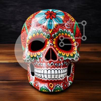 Υπάρχει δυνατότητα προσωποποίησης με δική σας φωτογραφία και προσαρμογής διαστάσεων κατόπιν παραγγελίας. Το συγεκεριμενο Puzzle 10x10 cm – 25 κομμ παρουσιαζει Αυτή η εικόνα παρουσιάζει ένα πολύχρωμο διακοσμημένο κρανίο, που συνήθως συνδέεται με τους εορτασμούς Dâ de los Muertos (Ημέρα των Νεκρών). Το κρανίο είναι διακοσμημένο με ζωηρά λουλουδάτα μοτίβα σε κόκκινο, κίτρινο και πράσινο χρώμα, επιδει