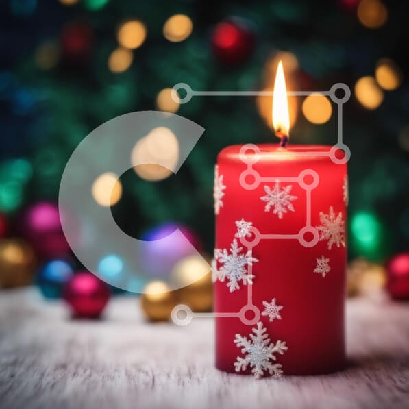 Υπάρχει δυνατότητα προσωποποίησης με δική σας φωτογραφία και προσαρμογής διαστάσεων κατόπιν παραγγελίας. Το συγεκεριμενο Puzzle 10x10 cm – 25 κομμ παρουσιαζει Αυτή η εικόνα παρουσιάζει ένα κόκκινο κερί διακοσμημένο με νιφάδες χιονιού, που περιβάλλεται από πολύχρωμες μπάλες και στολίδια. Το κερί τοποθετείται μπροστά από ένα τεχνητό χριστουγεννιάτικο δέντρο, δημιουργώντας μια γιορτινή ατμόσφαιρα. Εί