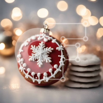 Υπάρχει δυνατότητα προσωποποίησης με δική σας φωτογραφία και προσαρμογής διαστάσεων κατόπιν παραγγελίας. Το συγεκεριμενο Puzzle 10x10 cm – 25 κομμ παρουσιαζει Αυτή η εικόνα παρουσιάζει ένα κόκκινο και λευκό στολίδι με νιφάδες χιονιού, συνοδευόμενο από πολλά μπισκότα. Φώτα περιβάλλουν το αντικείμενο, δημιουργώντας μια εορταστική ατμόσφαιρα. Τα μπισκότα θα μπορούσαν να αποτελούν μέρος ενός ημερολογί