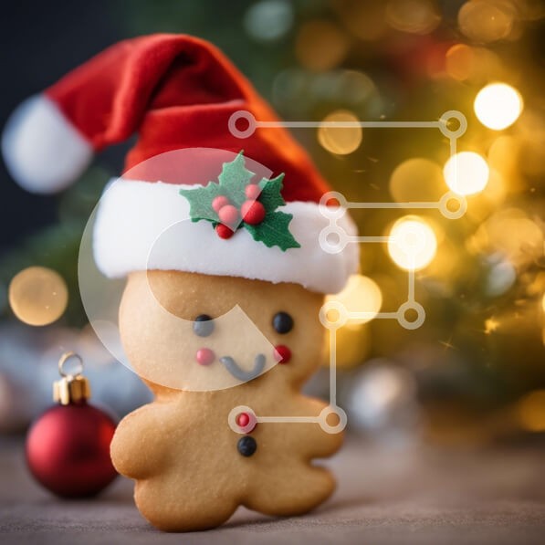 Υπάρχει δυνατότητα προσωποποίησης με δική σας φωτογραφία και προσαρμογής διαστάσεων κατόπιν παραγγελίας. Το συγεκεριμενο Puzzle 10x10 cm – 25 κομμ παρουσιαζει Αυτή η εικόνα δείχνει ένα μπισκότο με μελόψωμο με ένα καπέλο Άγιου Βασίλη, τοποθετημένο μπροστά από γιορτινά στολίδια και φωτάκια. Ενσαρκώνει το πνεύμα των γιορτών και μεταφέρει ζεστασιά και ευτυχία που συνδέονται με αυτή την εποχή του χρόνο