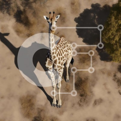 Υπάρχει δυνατότητα προσωποποίησης με δική σας φωτογραφία και προσαρμογής διαστάσεων κατόπιν παραγγελίας. Το συγεκεριμενο puzzle παρουσιαζει Η εικόνα παρουσιάζει μια εναέρια άποψη μιας καμηλοπάρδαλης που στέκεται στην έρημο, με το κεφάλι της να γέρνει προς τον ουρανό. Φαίνεται να κοιτάζει προς τα πάνω σε κάτι ή κάποιον, κάτι που μπορεί να δείχνει ότι είναι στραμμένο μακριά από την κάμερα. Υπάρχουν πολλά δέντρα και