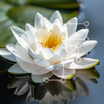 Υπάρχει δυνατότητα προσωποποίησης με δική σας φωτογραφία και προσαρμογής διαστάσεων κατόπιν παραγγελίας. Το συγεκεριμενο puzzle παρουσιαζει Η εικόνα παρουσιάζει μια γαλήνια σκηνή ενός λευκού νούφαρου που ανθίζει όμορφα στην επιφάνεια ενός ήρεμου υδάτινου σώματος. Το λουλούδι έχει λεπτά πέταλα που είναι λευκά με νότες πράσινου στις άκρες και ένα ζωντανό κίτρινο κέντρο που περιβάλλεται από περίπλοκους στήμονες. Η επ