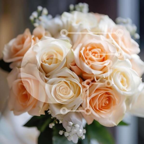 Υπάρχει δυνατότητα προσωποποίησης με δική σας φωτογραφία και προσαρμογής διαστάσεων κατόπιν παραγγελίας. Το συγεκεριμενο puzzle παρουσιαζει Η εικόνα παρουσιάζει ένα μπουκέτο από λευκά και ροδακινί τριαντάφυλλα, το οποίο είναι τοποθετημένο μπροστά από ένα ανοιχτό παράθυρο. Το μπουκέτο φαίνεται να είναι φρέσκο και καλοδιατηρημένο, υποδηλώνοντας ότι μπορεί να έχει πρόσφατα διαλεχθεί. Υπάρχει επίσης λίγη πρασινάδα κ