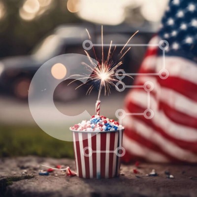 Υπάρχει δυνατότητα προσωποποίησης με δική σας φωτογραφία και προσαρμογής διαστάσεων κατόπιν παραγγελίας. Το συγεκεριμενο Puzzle 10x10 cm – 25 κομμ παρουσιαζει Η εικόνα δείχνει ένα βεγγαλικό σε σχήμα αμερικανικής σημαίας που φωτίζεται από πυροτεχνήματα. Ένα cupcake είναι τοποθετημένο στο έδαφος κοντά στο πυροτέχνημα, υποδεικνύοντας μια υπαίθρια γιορτή. Διάφορα πολύχρωμα sprinkles, όπως κόκκινο, λευ