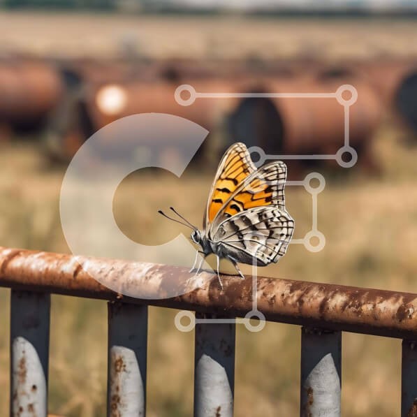 Υπάρχει δυνατότητα προσωποποίησης με δική σας φωτογραφία και προσαρμογής διαστάσεων κατόπιν παραγγελίας. Το συγεκεριμενο puzzle παρουσιαζει Η εικόνα απεικονίζει μια πεταλούδα σκαρφαλωμένη πάνω από ένα παλιό, σκουριασμένο μεταλλικό κιγκλίδωμα, με πολλά βαρέλια λαδιού στο βάθος. Η πεταλούδα συλλαμβάνεται κατά την πτήση, προσθέτοντας μια αίσθηση κίνησης στη σκηνή. Ένα μοναδικό puzzle που συνδυάζει ποιότητα, αισθητικ