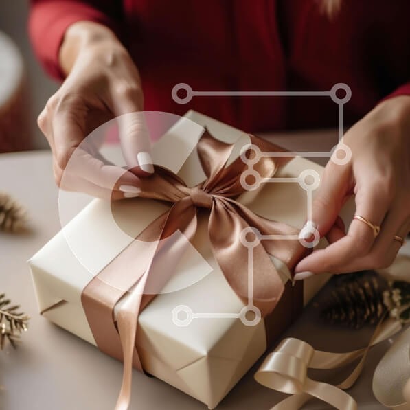 Υπάρχει δυνατότητα προσωποποίησης με δική σας φωτογραφία και προσαρμογής διαστάσεων κατόπιν παραγγελίας. Το συγεκεριμενο Puzzle 10x10 cm – 25 κομμ παρουσιαζει Αυτή η εικόνα απαθανατίζει μια γυναίκα να τυλίγει ένα δώρο με κορδέλες και κουκουνάρια. Η κομψή παρουσίαση προσθέτει μια ιδιαίτερη πινελιά στο δώρο, καθιστώντας το τέλειο για την περίοδο των γιορτών. Τα χέρια της γυναίκας είναι ορατά κοντά σ