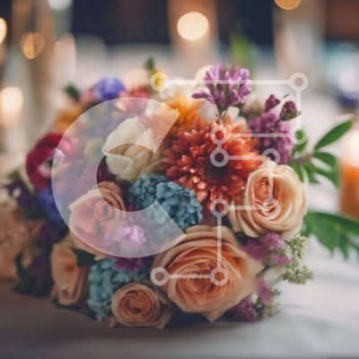 Υπάρχει δυνατότητα προσωποποίησης με δική σας φωτογραφία και προσαρμογής διαστάσεων κατόπιν παραγγελίας. Το συγεκεριμενο Puzzle 10x10 cm – 25 κομμ παρουσιαζει Αυτή η εικόνα παρουσιάζει ένα μπουκέτο από πολύχρωμα λουλούδια τοποθετημένα σε ένα τραπέζι με κεριά και άλλα διακοσμητικά. Το μπουκέτο περιλαμβάνει τριαντάφυλλα, γαρύφαλλα, μαργαρίτες και ζέρμπερες, δημιουργώντας μια ζωντανή και χαρούμενη ατ