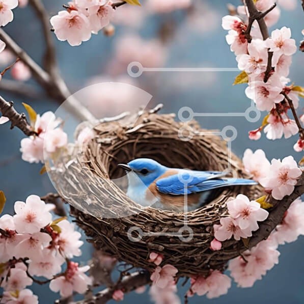 Υπάρχει δυνατότητα προσωποποίησης με δική σας φωτογραφία και προσαρμογής διαστάσεων κατόπιν παραγγελίας. Το συγεκεριμενο puzzle παρουσιαζει Αυτή η εικόνα παρουσιάζει ένα μπλε πουλί που φωλιάζει στα κλαδιά μιας μηλιάς, που περιβάλλεται από ροζ άνθη. Το πουλί ξεκουράζεται μέσα στη φωλιά, απολαμβάνοντας τη θέα των ανθισμένων κερασιών. Η σκηνή μεταφέρει μια αίσθηση χαλάρωσης και εκτίμησης για την ομορφιά της φύσης. Έ
