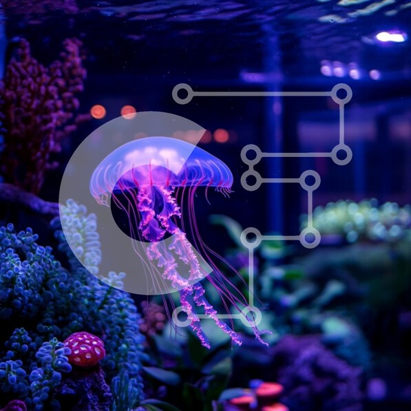 Υπάρχει δυνατότητα προσωποποίησης με δική σας φωτογραφία και προσαρμογής διαστάσεων κατόπιν παραγγελίας. Το συγεκεριμενο puzzle παρουσιαζει Η εικόνα απαθανατίζει μια φωτεινή μέδουσα να επιπλέει με χάρη σε ένα ενυδρείο, που περιβάλλεται από ζωντανά κοράλλια και υδρόβια φυτά. Η μέδουσα φωτίζεται από αποχρώσεις του μωβ και του μπλε, δημιουργώντας ένα μαγευτικό οπτικό αποτέλεσμα. Το φόντο διαθέτει απαλά φώτα bokeh, πρ