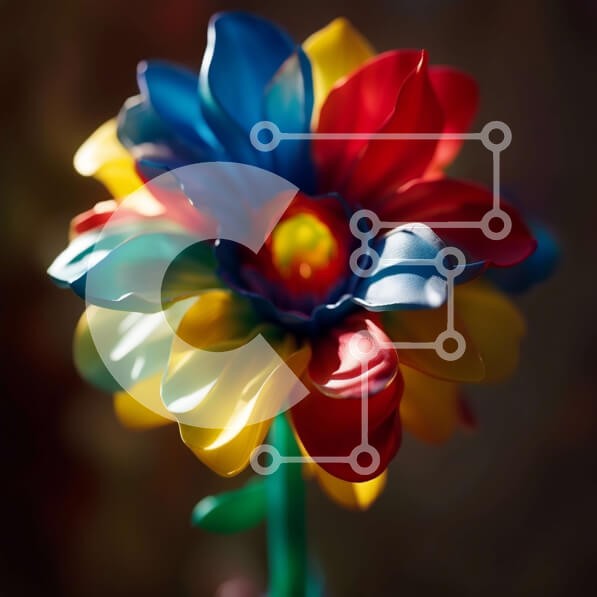 Υπάρχει δυνατότητα προσωποποίησης με δική σας φωτογραφία και προσαρμογής διαστάσεων κατόπιν παραγγελίας. Το συγεκεριμενο puzzle παρουσιαζει Αυτή η εικόνα παρουσιάζει ένα πολύχρωμο λουλούδι με ζωηρά κόκκινα, μπλε και κίτρινα πέταλα. Το λουλούδι ξεχωρίζει σε πράσινο φόντο, αναδεικνύοντας την ομορφιά και τα ζωντανά του χρώματα. Οι περίπλοκες λεπτομέρειες των πετάλων είναι ορατές, αιχμαλωτίζοντας την προσοχή του θεατή