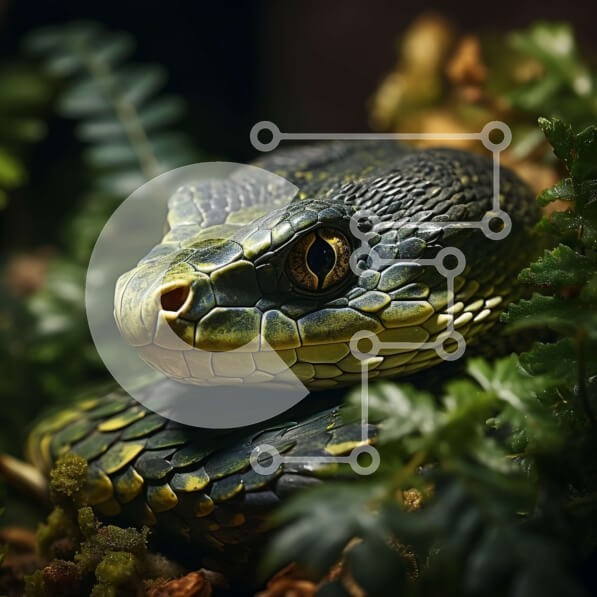 Υπάρχει δυνατότητα προσωποποίησης με δική σας φωτογραφία και προσαρμογής διαστάσεων κατόπιν παραγγελίας. Το συγεκεριμενο puzzle παρουσιαζει Αυτή η κοντινή εικόνα παρουσιάζει το κεφάλι ενός δηλητηριώδους φιδιού, πιθανώς μιας κόμπρας ή μιας οχιάς. Τα μάτια του φιδιού κοιτούν απευθείας την κάμερα, δημιουργώντας μια σαγηνευτική και έντονη σύνθεση. Το φόντο αποτελείται από πράσινα φύλλα και καφέ κλαδιά, παρέχοντας ένα