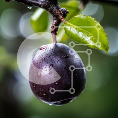 Υπάρχει δυνατότητα προσωποποίησης με δική σας φωτογραφία και προσαρμογής διαστάσεων κατόπιν παραγγελίας. Το συγεκεριμενο puzzle παρουσιαζει Η εικόνα παρουσιάζει ένα ώριμο δαμάσκηνο κρεμασμένο σε ένα κλαδί, που αστράφτει με σταγόνες νερού. Ο σκούρος μοβ καρπός περιβάλλεται από ζωηρά πράσινα φύλλα και το απαλό φόντο εστίασης δημιουργεί μια γαλήνια ατμόσφαιρα. Οι σταγόνες νερού ενισχύουν τη φρεσκάδα του δαμάσκηνου, κ