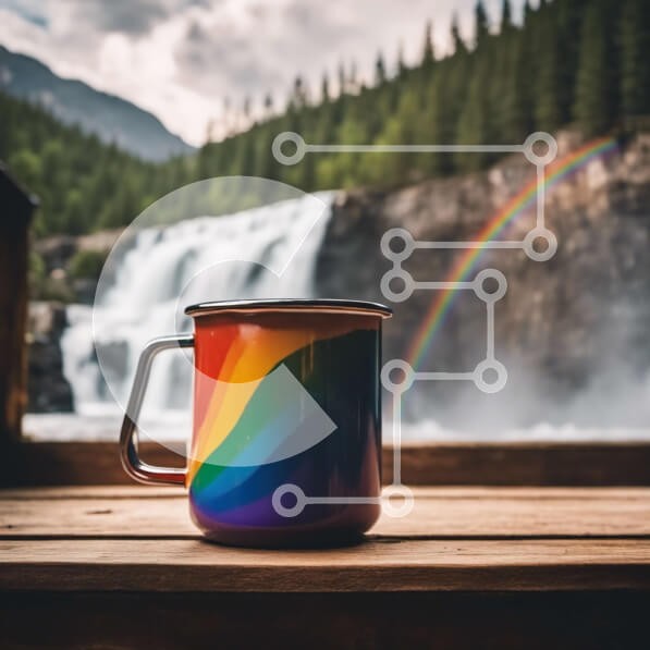 Υπάρχει δυνατότητα προσωποποίησης με δική σας φωτογραφία και προσαρμογής διαστάσεων κατόπιν παραγγελίας. Το συγεκεριμενο puzzle παρουσιαζει Αυτή η εικόνα παρουσιάζει μια πολύχρωμη κούπα τοποθετημένη σε ένα ξύλινο τραπέζι, τοποθετημένη μπροστά από έναν καταρράκτη που κόβει την ανάσα. Ο σχεδιασμός της κούπας περιλαμβάνει ένα ζωντανό μοτίβο ουράνιου τόξου και φαίνεται να είναι κατασκευασμένο από μέταλλο. Ο καταρράκτη
