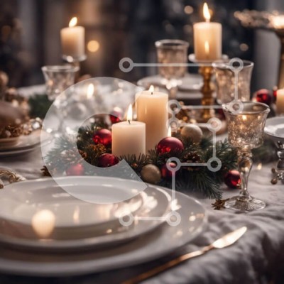 Υπάρχει δυνατότητα προσωποποίησης με δική σας φωτογραφία και προσαρμογής διαστάσεων κατόπιν παραγγελίας. Το συγεκεριμενο Puzzle 10x10 cm – 25 κομμ παρουσιαζει Αυτή η εικόνα παρουσιάζει ένα όμορφα διακοσμημένο τραπέζι για την περίοδο των γιορτών. Το τραπέζι είναι στολισμένο με κεριά, πιάτα και μαχαιροπίρουνα, δημιουργώντας μια ζεστή και φιλόξενη ατμόσφαιρα. Υπάρχουν επίσης στολίδια όπως κουκουνάρια