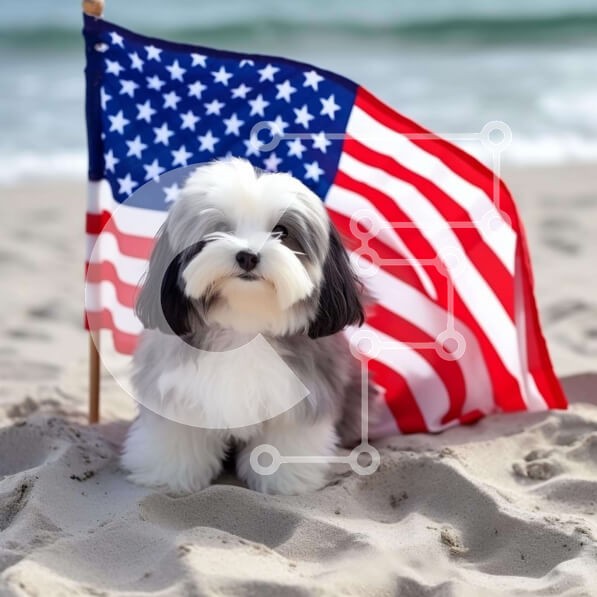 Υπάρχει δυνατότητα προσωποποίησης με δική σας φωτογραφία και προσαρμογής διαστάσεων κατόπιν παραγγελίας. Το συγεκεριμενο Puzzle 10x10 cm – 25 κομμ παρουσιαζει Η εικόνα δείχνει ένα μικρό σκυλί να κάθεται στην παραλία με μια αμερικανική σημαία μπροστά του. Ο σκύλος μπορεί να γιορτάζει την 4η Ιουλίου ή κάποια άλλη πατριωτική γιορτή, όπως η Ημέρα της Ανεξαρτησίας ή η Ημέρα των Βετεράνων. Είναι πιθανό