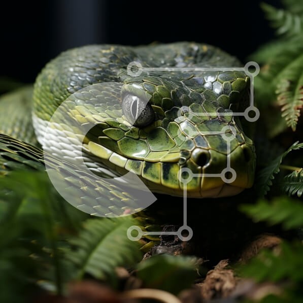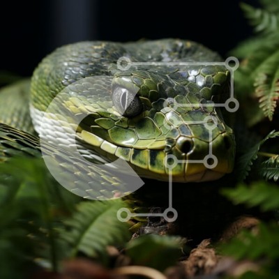Υπάρχει δυνατότητα προσωποποίησης με δική σας φωτογραφία και προσαρμογής διαστάσεων κατόπιν παραγγελίας. Το συγεκεριμενο puzzle παρουσιαζει Αυτή η εκπληκτική φωτογραφία καταγράφει μια κοντινή θέα του κεφαλιού ενός φιδιού, δείχνοντας τα μαγευτικά μάτια και τους επικίνδυνους κυνόδοντες του. Το φίδι έχει κυρίως πράσινο και καφέ χρώμα και το φόντο έχει πλούσια βλάστηση και φύλλα. Οι περίπλοκες λεπτομέρειες από τα λέπι
