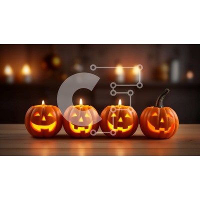 Υπάρχει δυνατότητα προσωποποίησης με δική σας φωτογραφία και προσαρμογής διαστάσεων κατόπιν παραγγελίας. Το συγεκεριμενο Puzzle 10x10 cm – 25 κομμ παρουσιαζει Αυτή η εικόνα παρουσιάζει τέσσερις περίπλοκα σκαλισμένες κολοκύθες τοποθετημένες σε ένα ξύλινο τραπέζι. Το φόντο διαθέτει αναμμένα κεριά, δημιουργώντας μια απόκοσμη και ατμοσφαιρική ατμόσφαιρα. Αυτές οι κολοκύθες είναι τέλειες για διακόσμηση