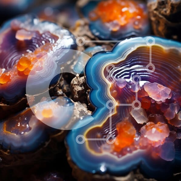 Υπάρχει δυνατότητα προσωποποίησης με δική σας φωτογραφία και προσαρμογής διαστάσεων κατόπιν παραγγελίας. Το συγεκεριμενο puzzle παρουσιαζει Αυτή η εικόνα παρουσιάζει μια κοντινή άποψη ενός γυαλισμένου βράχου αχάτη. Ο βράχος εμφανίζει μια ποικιλία χρωμάτων, συμπεριλαμβανομένου του μωβ, του πορτοκαλί και του κίτρινου, και παρουσιάζει περίπλοκα μοτίβα με ταινίες στην επιφάνειά του. Ο αχάτης έχει λεία και γυαλιστερή υ
