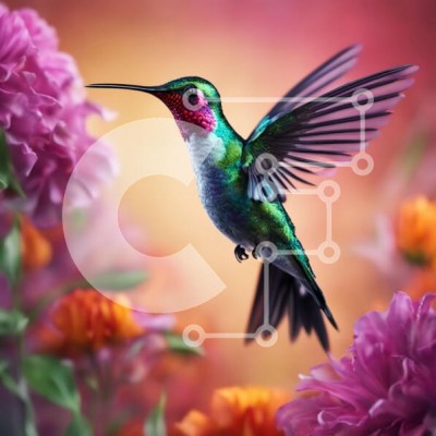 Υπάρχει δυνατότητα προσωποποίησης με δική σας φωτογραφία και προσαρμογής διαστάσεων κατόπιν παραγγελίας. Το συγεκεριμενο puzzle παρουσιαζει Αυτή η εικόνα απεικονίζει ένα κολίβριο σε πτήση πάνω από ένα χωράφι με ροζ και πορτοκαλί λουλούδια. Το κολίβριο έχει έντονο χρώμα με ιριδίζοντα φτερά και μακρύ, καμπύλο ράμφος. Τα λουλούδια στο βάθος είναι επίσης έντονα χρωματιστά και σε πλήρη άνθηση, δημιουργώντας μια ζωντανή
