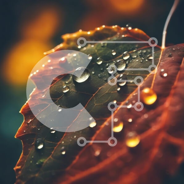 Υπάρχει δυνατότητα προσωποποίησης με δική σας φωτογραφία και προσαρμογής διαστάσεων κατόπιν παραγγελίας. Το συγεκεριμενο puzzle παρουσιαζει Αυτή η εικόνα καταγράφει μια κοντινή άποψη ενός ζωντανού φύλλου στολισμένου με σταγονίδια νερού, που αστράφτει κάτω από απαλό φως. Το φύλλο εμφανίζει πλούσια χρώματα που κυμαίνονται από βαθύ πράσινο έως αποχρώσεις του κόκκινου και του πορτοκαλί, υποδεικνύοντας την έναρξη του φ
