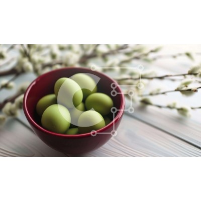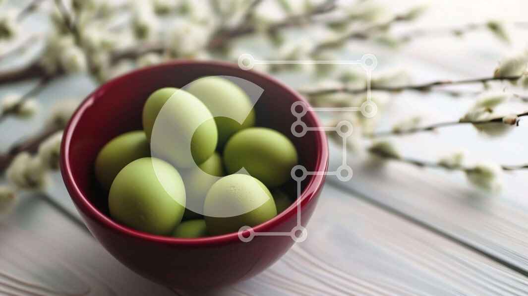 Υπάρχει δυνατότητα προσωποποίησης με δική σας φωτογραφία και προσαρμογής διαστάσεων κατόπιν παραγγελίας. Το συγεκεριμενο Puzzle 10x10 cm – 25 κομμ παρουσιαζει Αυτή η εικόνα δείχνει ένα κόκκινο μπολ γεμάτο με πράσινα πασχαλινά αυγά, με φόντο λευκά άνθη και κλαδιά. Τα ζωηρά χρώματα και η ζεστή σύνθεση προκαλούν το πνεύμα των εορτασμών του Πάσχα και της άνοιξης. Ένα μοναδικό Puzzle 10x10 cm – 25 κομ