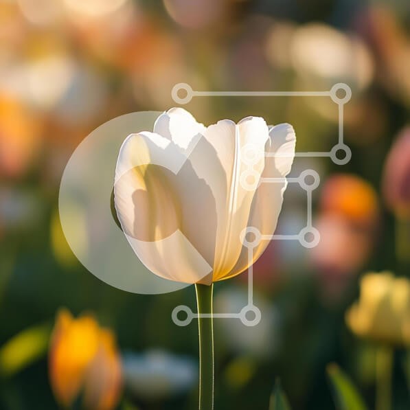 Υπάρχει δυνατότητα προσωποποίησης με δική σας φωτογραφία και προσαρμογής διαστάσεων κατόπιν παραγγελίας. Το συγεκεριμενο puzzle παρουσιαζει Αυτή η εικόνα παρουσιάζει μια λεπτή λευκή τουλίπα που φωτίζεται από το απαλό φως του ήλιου. Το λουλούδι στέκεται με χάρη σε ένα θολό φόντο από πολύχρωμες τουλίπες σε διάφορες αποχρώσεις. Τα πέταλά του είναι ημιδιαφανή, επιδεικνύοντας περίπλοκες υφές που τραβούν υπέροχα το φως.