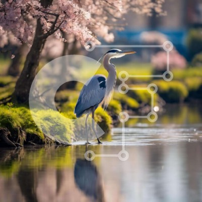 Υπάρχει δυνατότητα προσωποποίησης με δική σας φωτογραφία και προσαρμογής διαστάσεων κατόπιν παραγγελίας. Το συγεκεριμενο puzzle παρουσιαζει Η εικόνα δείχνει έναν μπλε ερωδιό να στέκεται στο νερό κοντά σε μερικά ροζ ανθισμένα δέντρα. Το πουλί είναι σκαρφαλωμένο στη μία πλευρά του ποταμού, με τα πόδια του να ακουμπούν στην όχθη. Μοιάζει σαν να περιμένει να συμβεί κάτι, κάτι που θα μπορούσε να είναι ένδειξη ότι θέλει