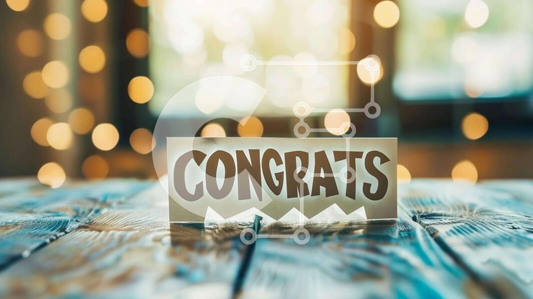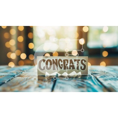 Υπάρχει δυνατότητα προσωποποίησης με δική σας φωτογραφία και προσαρμογής διαστάσεων κατόπιν παραγγελίας. Το συγεκεριμενο Puzzle 10x10 cm – 25 κομμ παρουσιαζει Η εικόνα δείχνει μια χάρτινη κάρτα με τη λέξη «Συγχαρητήρια» γραμμένη πάνω της, τοποθετημένη σε ένα ξύλινο τραπέζι μπροστά από πολύχρωμα φώτα και φόντο που μοιάζει με bokeh. Μεταφέρει μια εορταστική ατμόσφαιρα, υποδεικνύοντας ότι ο παραλήπτη