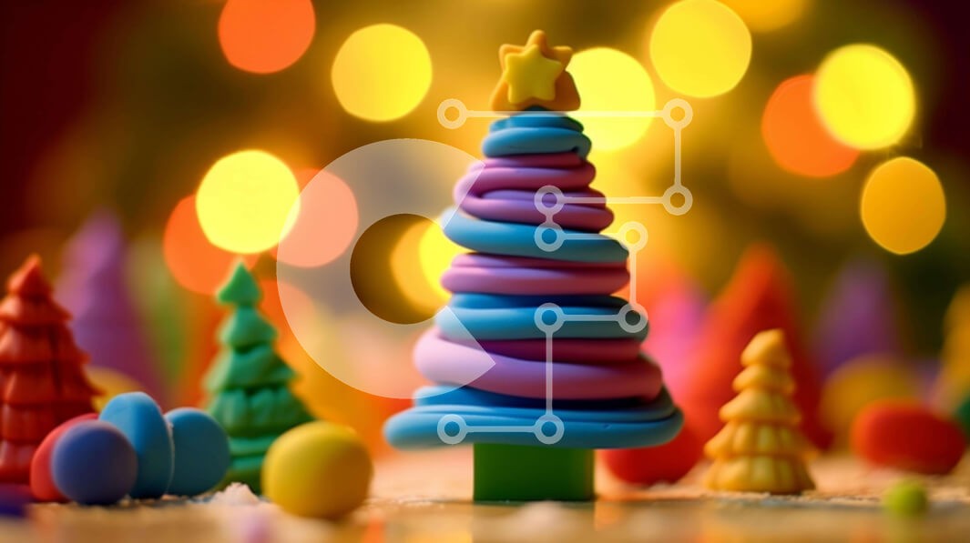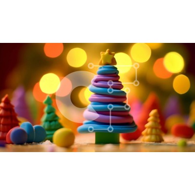 Υπάρχει δυνατότητα προσωποποίησης με δική σας φωτογραφία και προσαρμογής διαστάσεων κατόπιν παραγγελίας. Το συγεκεριμενο Puzzle 10x10 cm – 25 κομμ παρουσιαζει Αυτή η εικόνα παρουσιάζει ένα χριστουγεννιάτικο δέντρο με πολύχρωμο παιχνίδι από πολυμερή πηλό τοποθετημένο στη μέση άλλων πολύχρωμων δέντρων. Βρίσκεται σε φωτισμένο φόντο, δημιουργώντας μια εορταστική ατμόσφαιρα. Φώτα με έντονα χρώματα φαίν
