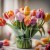Υπάρχει δυνατότητα προσωποποίησης με δική σας φωτογραφία και προσαρμογής διαστάσεων κατόπιν παραγγελίας. Το συγεκεριμενο puzzle παρουσιαζει Αυτή η εικόνα παρουσιάζει ένα βάζο γεμάτο με πολύχρωμες τουλίπες, τοποθετημένο σε ένα τραπέζι μπροστά από ένα παράθυρο με θέα στον κήπο. Οι τουλίπες είναι ένας συνδυασμός ροζ, κίτρινου και πορτοκαλί, προσθέτοντας ένα ζωντανό ποπ χρώμα στη σκηνή. Το βάζο είναι διαυγές και έχει