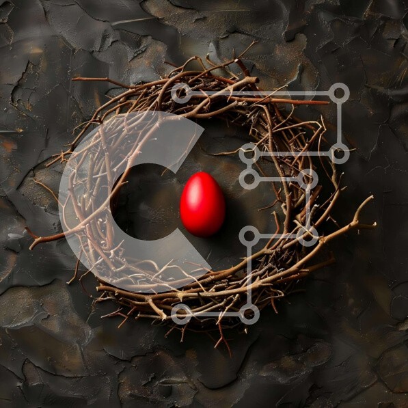 Υπάρχει δυνατότητα προσωποποίησης με δική σας φωτογραφία και προσαρμογής διαστάσεων κατόπιν παραγγελίας. Το συγεκεριμενο puzzle παρουσιαζει Η εικόνα απεικονίζει ένα κόκκινο αυγό φωλιασμένο στα κλαδιά και τα κλαδιά ενός γερασμένου, σε αποσύνθεση δέντρου. Τοποθετείται μέσα στο στεφάνι, το οποίο φαίνεται να είναι κατασκευασμένο από φυσικά υλικά, όπως κλαδιά ή φύλλα. Το σχήμα του αυγού υποδηλώνει ότι μπορεί να έχει με