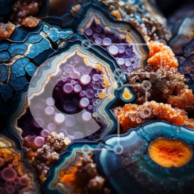 Υπάρχει δυνατότητα προσωποποίησης με δική σας φωτογραφία και προσαρμογής διαστάσεων κατόπιν παραγγελίας. Το συγεκεριμενο puzzle παρουσιαζει Αυτή η εικόνα δείχνει μια κοντινή άποψη του ταινιωμένου αχάτη, ενός τύπου βράχου που σχηματίζεται από τη στερεοποίηση λάβας ή μάγματος. Ο αχάτης διαθέτει ένα μπλε, μωβ και πορτοκαλί μοτίβο χρώματος γνωστό ως ταινιωτός αχάτης, το οποίο προκαλείται από την παρουσία ορυκτών όπως