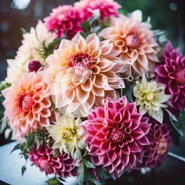Υπάρχει δυνατότητα προσωποποίησης με δική σας φωτογραφία και προσαρμογής διαστάσεων κατόπιν παραγγελίας. Το συγεκεριμενο puzzle παρουσιαζει Η εικόνα δείχνει ένα πολύχρωμο μπουκέτο ντάλιες σε διάφορες αποχρώσεις, όπως ροζ, πορτοκαλί, κίτρινο και λευκό. Διαφορετικοί τύποι ντάλιες είναι τοποθετημένοι μαζί, δημιουργώντας μια ζωντανή και χαρούμενη οθόνη. Μερικά λουλούδια μπορεί να έχουν αγοραστεί πρόσφατα, ενώ άλλα φαί