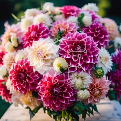 Υπάρχει δυνατότητα προσωποποίησης με δική σας φωτογραφία και προσαρμογής διαστάσεων κατόπιν παραγγελίας. Το συγεκεριμενο puzzle παρουσιαζει Η εικόνα παρουσιάζει ένα μεγάλο βάζο γεμάτο με ροζ, λευκά και κίτρινα άνθη ντάλιας. Υπάρχουν πολλά διαφορετικά είδη λουλουδιών στο βάζο, όπως μαργαρίτες, τριαντάφυλλα, γαρίφαλα, καθώς και άλλες ποικιλίες. Μερικά από τα λουλούδια φαίνεται να είναι μεγαλύτερα από άλλα, υποδηλώνο