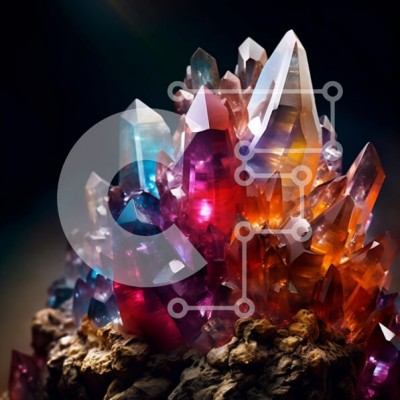 Υπάρχει δυνατότητα προσωποποίησης με δική σας φωτογραφία και προσαρμογής διαστάσεων κατόπιν παραγγελίας. Το συγεκεριμενο puzzle παρουσιαζει Αυτή η εικόνα είναι ένα κοντινό πλάνο ενός συμπλέγματος πολύχρωμων κρυστάλλων σε μια βραχώδη επιφάνεια. Οι κρύσταλλοι φαίνονται να λάμπουν και να λάμπουν στο φως, με τις αποχρώσεις του μωβ, του ροζ και του πορτοκαλί να δημιουργούν μια ζωντανή ατμόσφαιρα. Το φόντο είναι σκοτειν