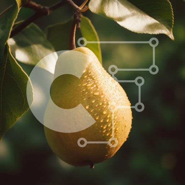 Υπάρχει δυνατότητα προσωποποίησης με δική σας φωτογραφία και προσαρμογής διαστάσεων κατόπιν παραγγελίας. Το συγεκεριμενο puzzle παρουσιαζει Μια κοντινή εικόνα ενός αχλαδιού που κρέμεται από ένα κλαδί, στολισμένο με σταγόνες νερού. Το αχλάδι είναι ως επί το πλείστον κίτρινο με μια νότα πράσινου και έχει μια ανάγλυφη φλούδα που λάμπει στο φως. Γύρω από τον καρπό υπάρχουν φωτεινά πράσινα φύλλα που προσθέτουν λάμψη στ