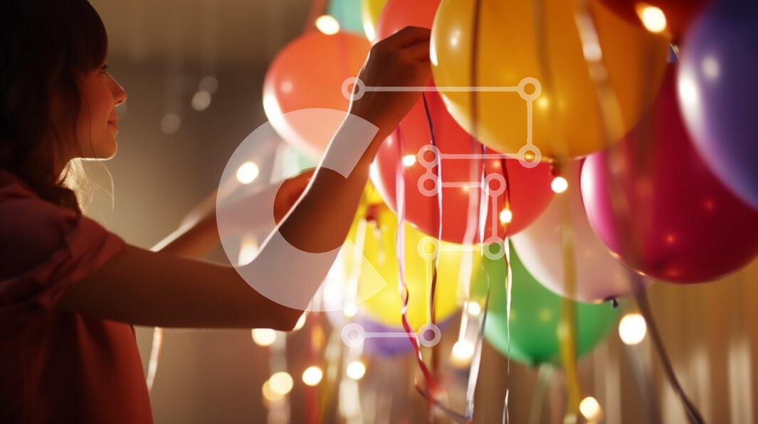Υπάρχει δυνατότητα προσωποποίησης με δική σας φωτογραφία και προσαρμογής διαστάσεων κατόπιν παραγγελίας. Το συγεκεριμενο Puzzle 10x10 cm – 25 κομμ παρουσιαζει Η εικόνα απεικονίζει μια νεαρή γυναίκα να διακοσμεί χαρούμενα ένα εορταστικό σκηνικό με πολύχρωμα μπαλόνια. Τα μπαλόνια σε διάφορα χρώματα, όπως κόκκινο, κίτρινο, ροζ και πράσινο, δημιουργούν μια ζωντανή ατμόσφαιρα, ενώ τα απαλά, ζεστά φώτα