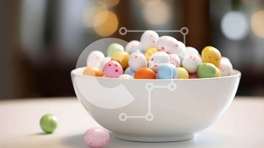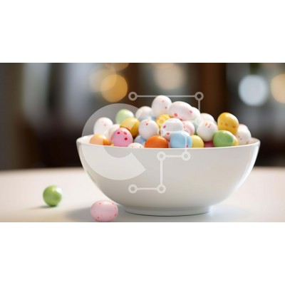 Υπάρχει δυνατότητα προσωποποίησης με δική σας φωτογραφία και προσαρμογής διαστάσεων κατόπιν παραγγελίας. Το συγεκεριμενο Puzzle 10x10 cm – 25 κομμ παρουσιαζει Αυτή η εικόνα δείχνει ένα λευκό μπολ γεμάτο με πολύχρωμα πασχαλινά αυγά, διάσπαρτα γύρω από την επιφάνεια του τραπεζιού. Τα αυγά έρχονται σε διάφορα χρώματα όπως κόκκινο, κίτρινο, πράσινο, μπλε και μοβ, με μερικά να φαίνονται μεγαλύτερα από
