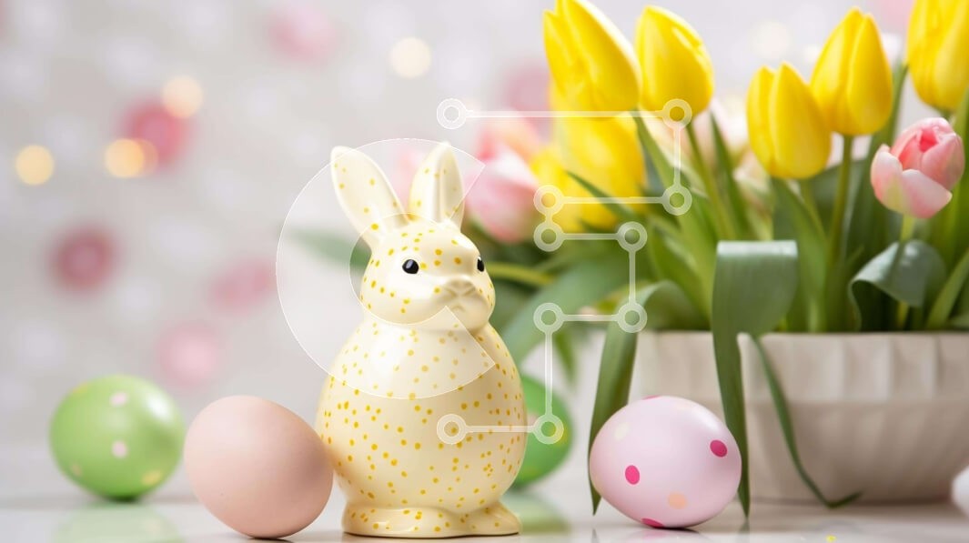 Υπάρχει δυνατότητα προσωποποίησης με δική σας φωτογραφία και προσαρμογής διαστάσεων κατόπιν παραγγελίας. Το συγεκεριμενο Puzzle 10x10 cm – 25 κομμ παρουσιαζει Αυτή η εικόνα παρουσιάζει ένα λευκό ειδώλιο κουνελιού τοποθετημένο δίπλα σε πολλά πολύχρωμα πασχαλινά αυγά και ζωντανές τουλίπες. Το εορταστικό τραπέζι μεταφέρει το πνεύμα μιας πασχαλινής γιορτής, δημιουργώντας μια ζωντανή και χαρούμενη ατμό