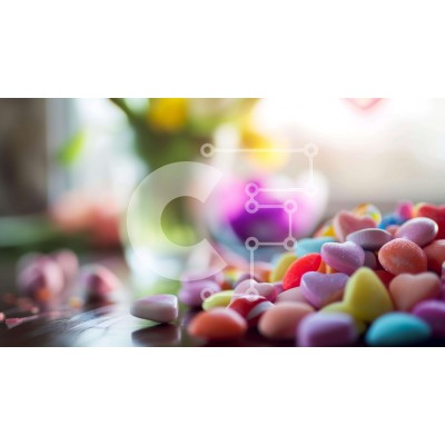 Υπάρχει δυνατότητα προσωποποίησης με δική σας φωτογραφία και προσαρμογής διαστάσεων κατόπιν παραγγελίας. Το συγεκεριμενο Puzzle 10x10 cm – 25 κομμ παρουσιαζει Αυτή η εικόνα είναι μια κοντινή λήψη ενός σωρού από πολύχρωμα ζαχαρωτά μπαστούνια σε σχήμα καρδιάς, διάσπαρτα σε ένα τραπέζι. Στο βάθος, υπάρχουν πολλά λουλούδια, που υποδηλώνουν μια λουλουδάτη σύνθεση. Τα ζωηρά χρώματα και η χαρούμενη ατμόσ