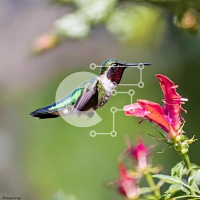 Υπάρχει δυνατότητα προσωποποίησης με δική σας φωτογραφία και προσαρμογής διαστάσεων κατόπιν παραγγελίας. Το συγεκεριμενο puzzle παρουσιαζει Η εικόνα δείχνει ένα κολίβριο να αιωρείται κοντά σε ροζ λουλούδια, που πιθανότατα τρέφεται με το νέκταρ. Το μακρύ ράμφος του ζωντανού πουλιού και το πολύχρωμο φτέρωμα διακρίνονται σε περίοπτη θέση. Αρκετά φυτά στο παρασκήνιο προσφέρουν πρόσθετη τροφή ή καταφύγιο για το κολιμπρ