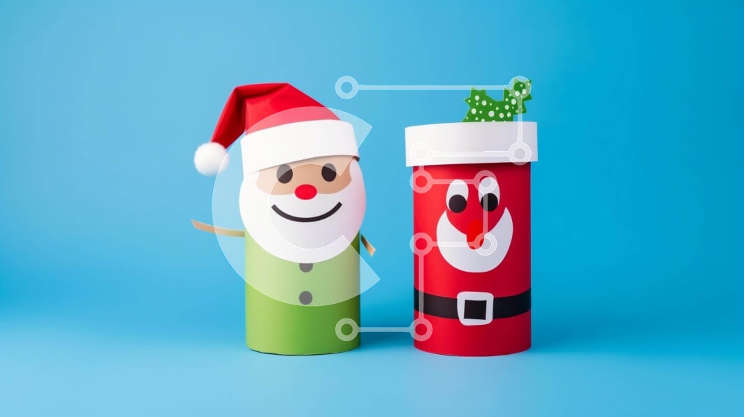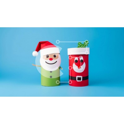 Υπάρχει δυνατότητα προσωποποίησης με δική σας φωτογραφία και προσαρμογής διαστάσεων κατόπιν παραγγελίας. Το συγεκεριμενο Puzzle 10x10 cm – 25 κομμ παρουσιαζει Αυτή η εικόνα παρουσιάζει δύο χάρτινα ποτήρια σε σχήμα Άγιου Βασίλη σε μπλε φόντο. Τα κύπελλα είναι διακοσμημένα με κόκκινα και λευκά διακοσμητικά, όπως καπέλα Άγιου Βασίλη και κέρατα ταράνδου, για να αντιπροσωπεύουν την περίοδο των γιορτών.