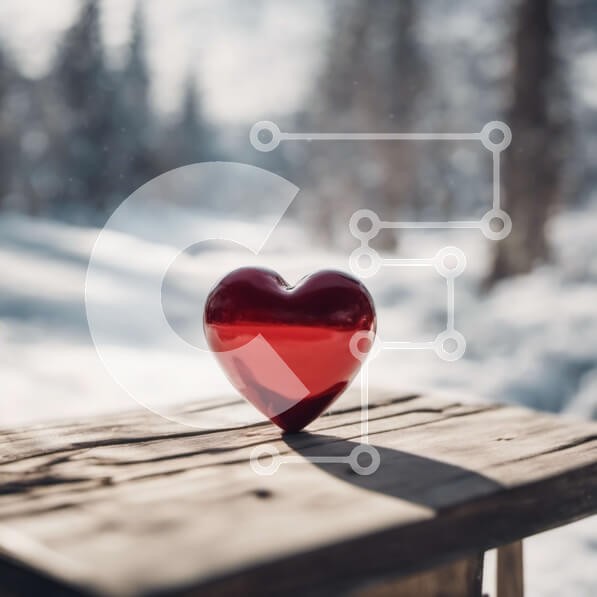 Υπάρχει δυνατότητα προσωποποίησης με δική σας φωτογραφία και προσαρμογής διαστάσεων κατόπιν παραγγελίας. Το συγεκεριμενο puzzle παρουσιαζει Αυτή η εικόνα παρουσιάζει ένα κόκκινο γυάλινο στολίδι σε σχήμα καρδιάς τοποθετημένο σε ένα ξύλινο τραπέζι στη μέση ενός χιονισμένου δάσους. Η καρδιά έχει μια λεία, καθαρή επιφάνεια που αντανακλά το γύρω χιονισμένο τοπίο. Τα χιονισμένα δέντρα δημιουργούν μια γαλήνια και γαλήνια