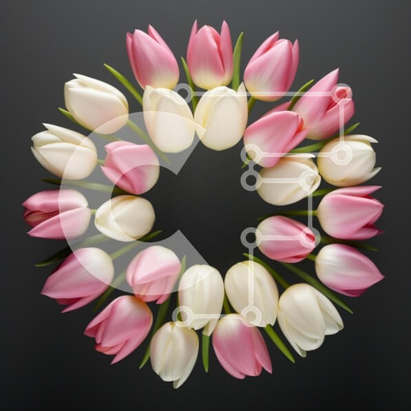 Υπάρχει δυνατότητα προσωποποίησης με δική σας φωτογραφία και προσαρμογής διαστάσεων κατόπιν παραγγελίας. Το συγεκεριμενο puzzle παρουσιαζει Αυτή η εικόνα παρουσιάζει μια κυκλική διάταξη από τουλίπες σε αποχρώσεις του ροζ και του λευκού, σε σκούρο φόντο. Οι τουλίπες είναι όμορφα διατεταγμένες, δημιουργώντας μια οπτικά ευχάριστη συμμετρία που ενισχύει τα ζωντανά τους χρώματα. Κάθε λουλούδι αποτυπώνεται με λεπτομέρει