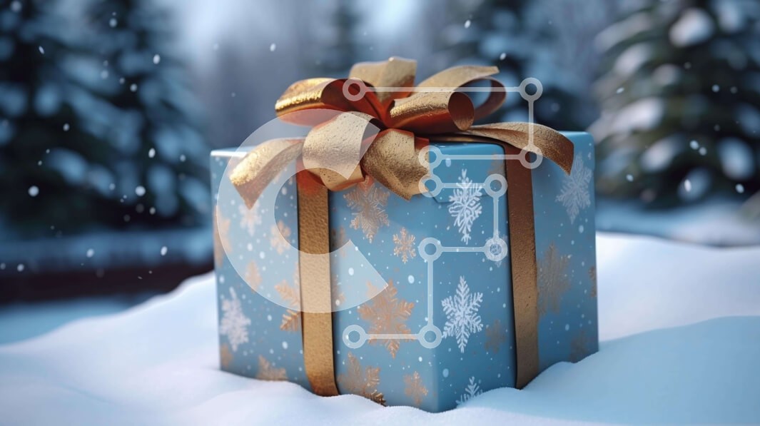 Υπάρχει δυνατότητα προσωποποίησης με δική σας φωτογραφία και προσαρμογής διαστάσεων κατόπιν παραγγελίας. Το συγεκεριμενο Puzzle 10x10 cm – 25 κομμ παρουσιαζει Αυτή η εικόνα παρουσιάζει ένα μπλε και χρυσό κουτί δώρου που κάθεται στο χιόνι, με νιφάδες χιονιού να πέφτουν από τον ουρανό. Είναι διακοσμημένο με χρυσές κορδέλες και φιόγκους, δημιουργώντας ένα εορταστικό και οπτικά ελκυστικό σκηνικό. Γύρω